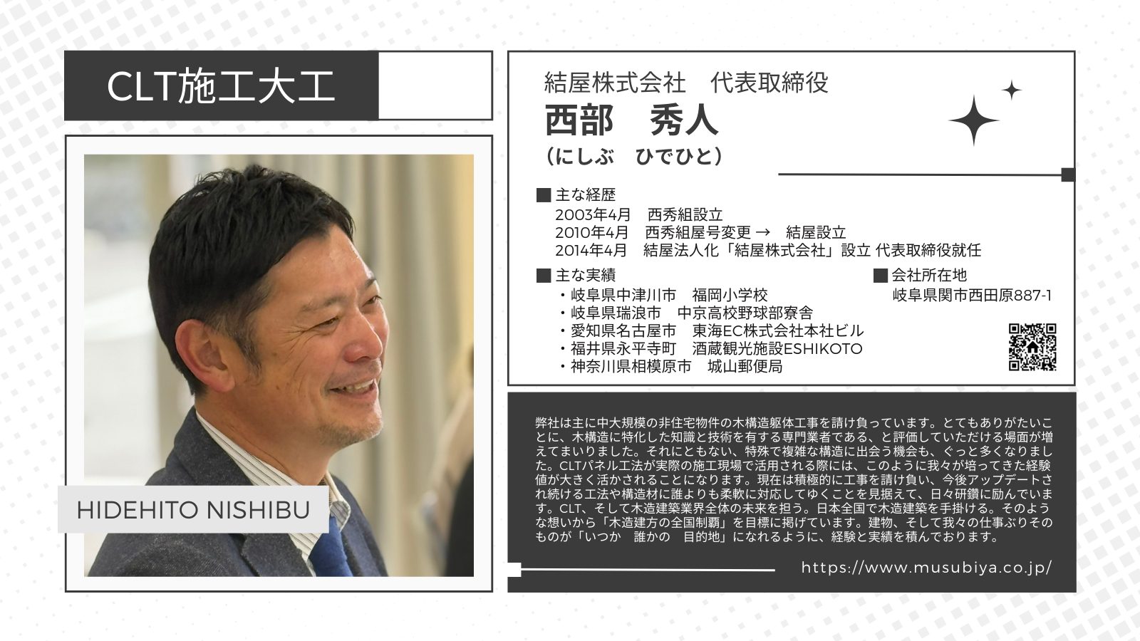 CLTパネル工法をはじめ、CLTを利用した建築物の数多くの施工経験を持つスペシャリストをご紹介します。
